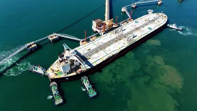 【一艘装载进口原油的货轮进港】